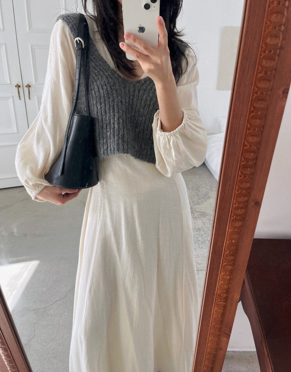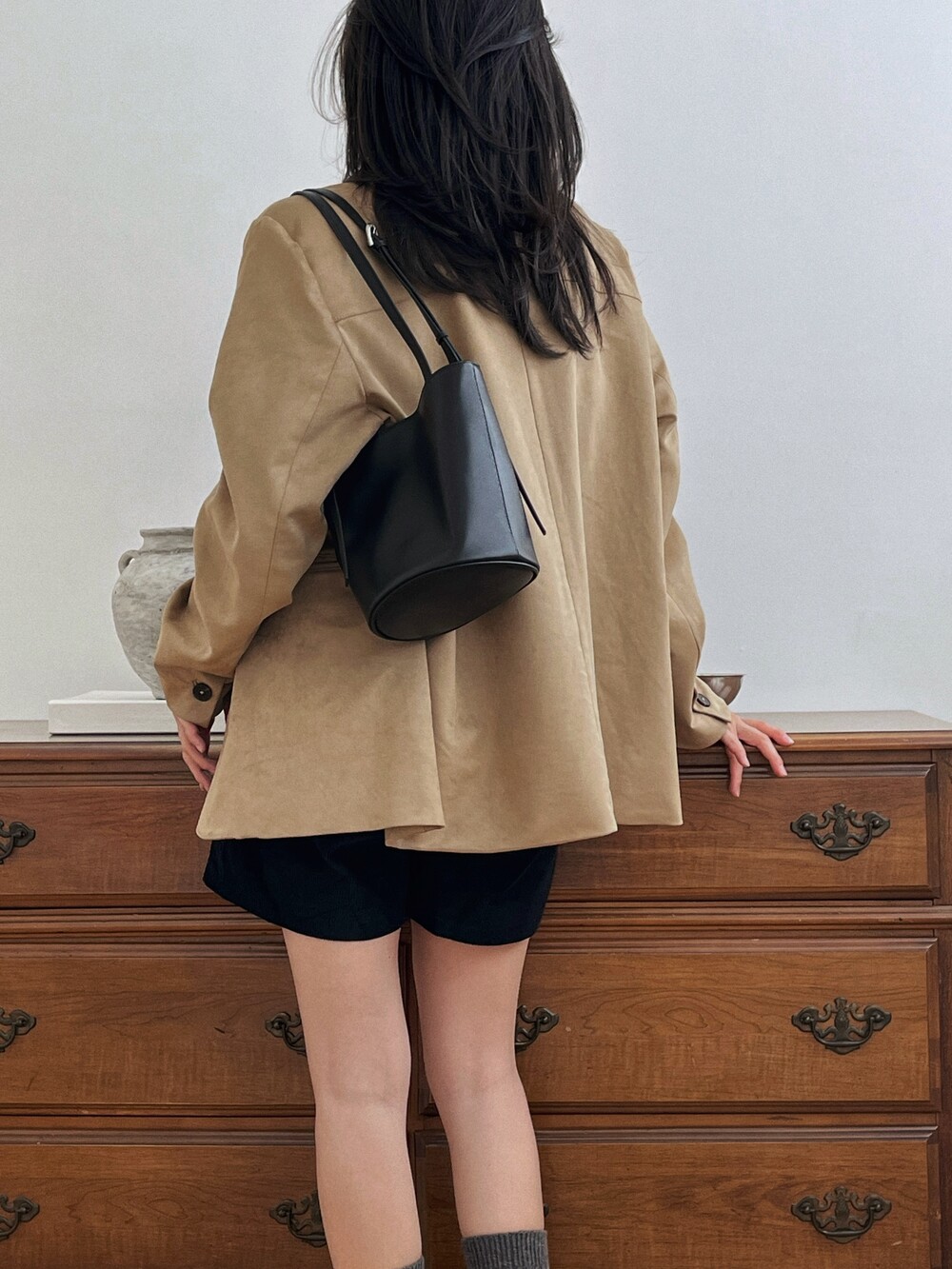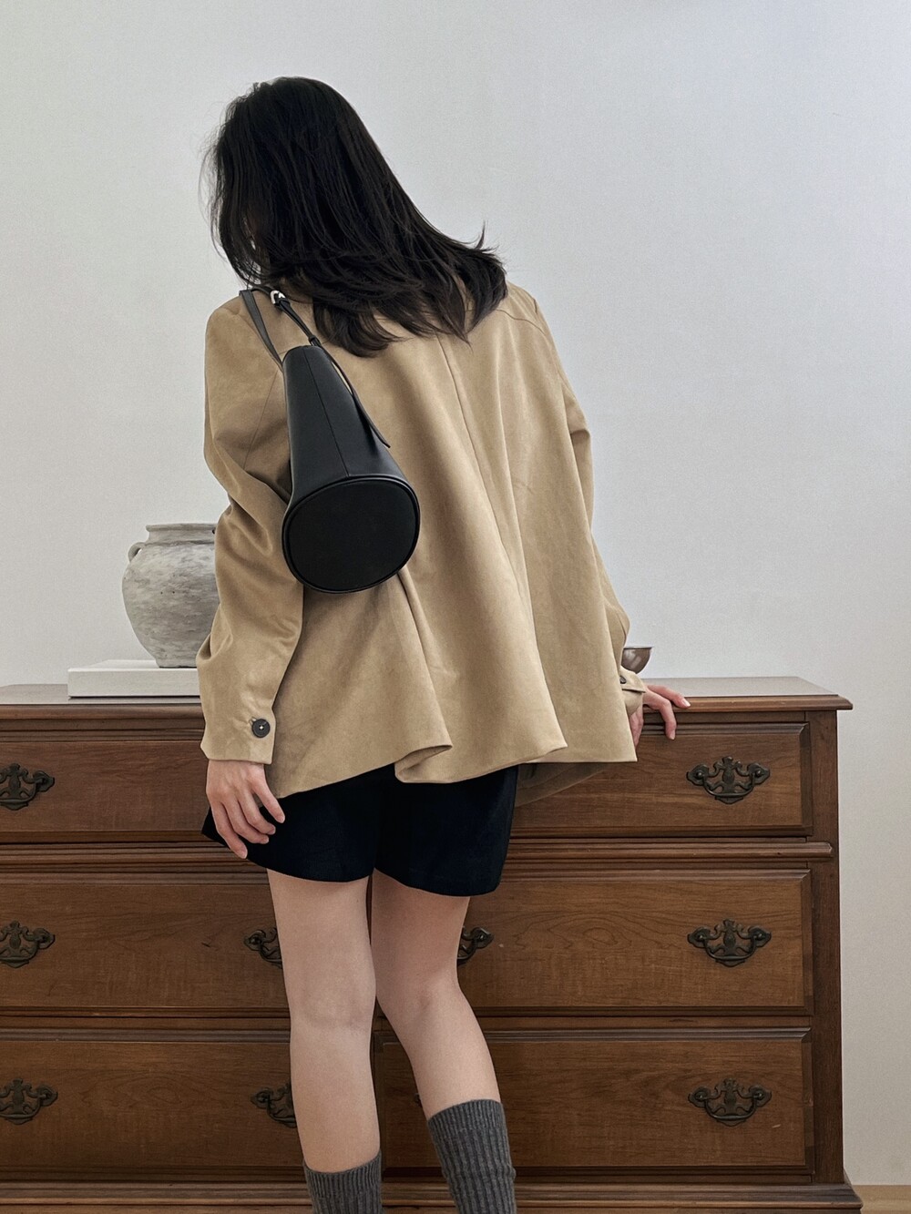 두꺼운 아우터에도 긴 숄더로 기장을 변경해